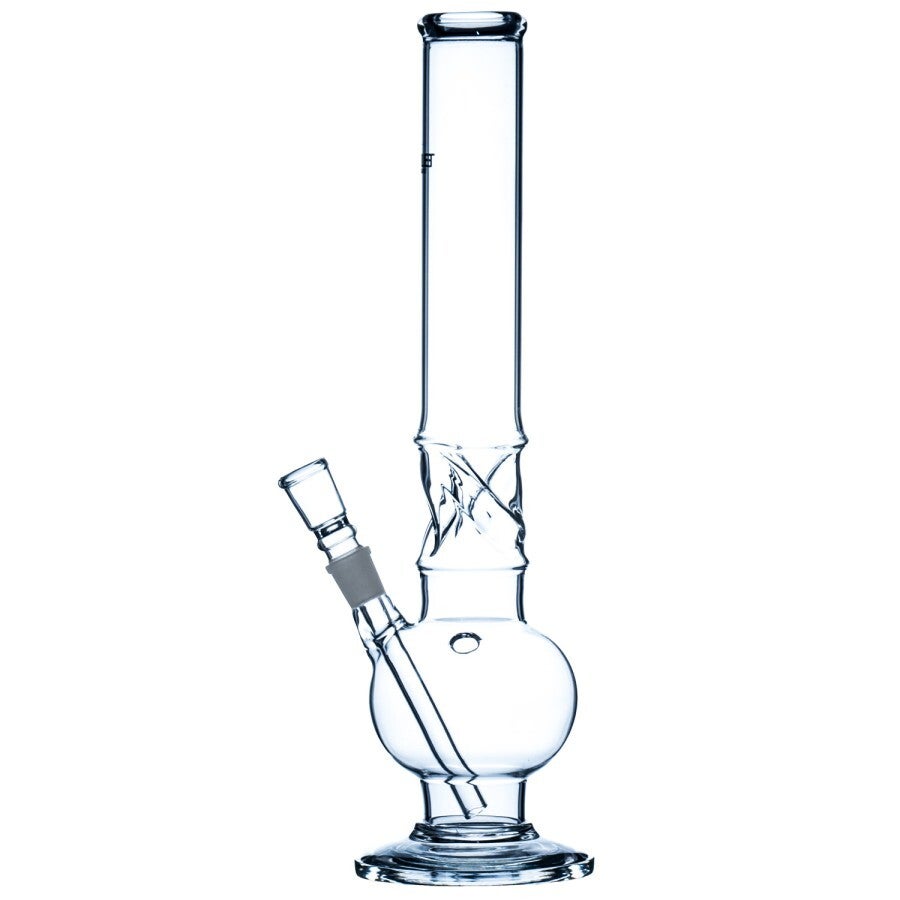 Bullet Glas Zylinder Bong mit Bauch und Eiskerben für alle Liebhaber des eisgekühlten Rauchgenusses. 43cm hoch, Ø=50mm, Chillum Schliff 18,8mm